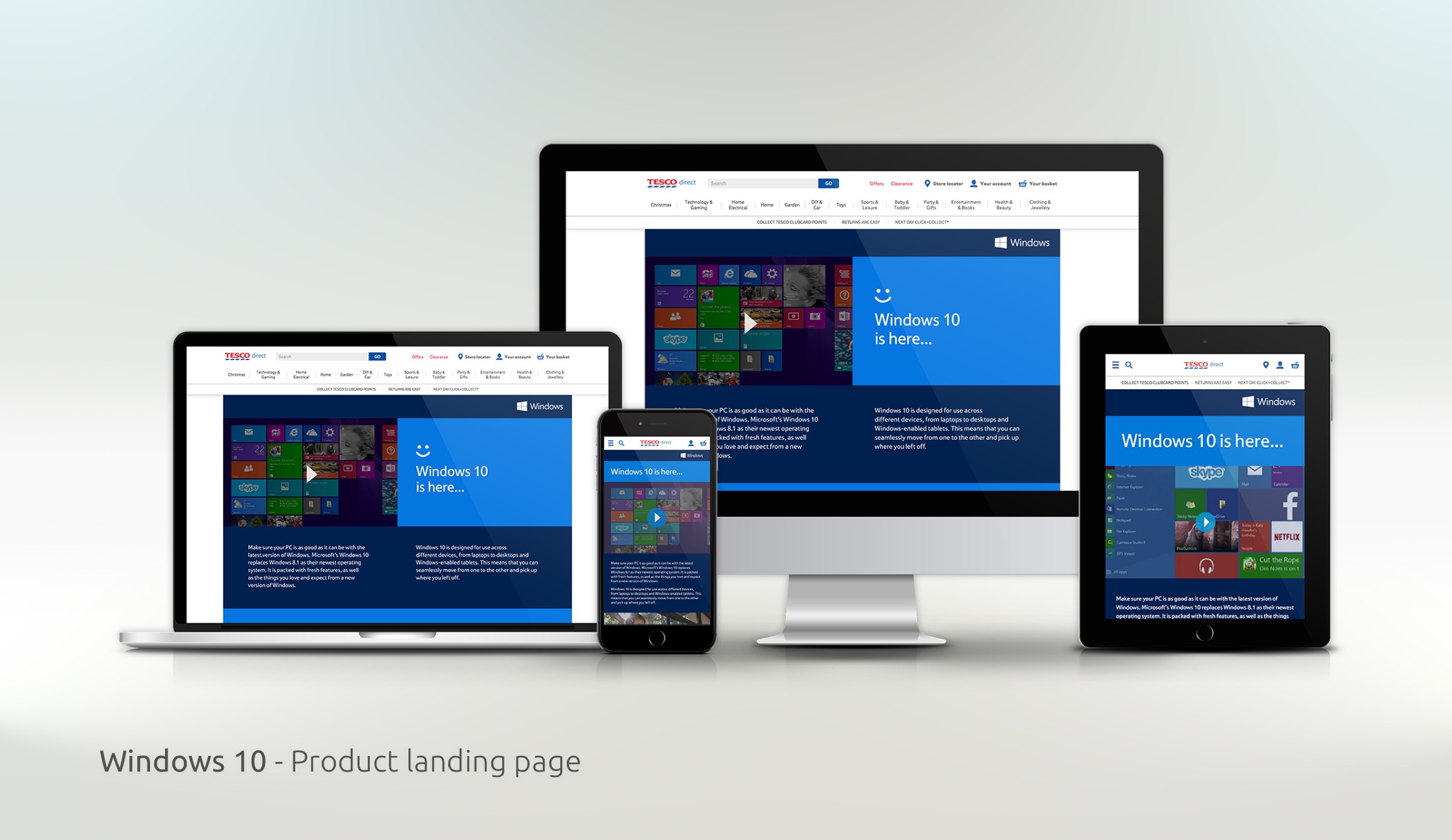 Original W10 launch brand assets provided by Windows, some were edited and device icons created to fit with page layout