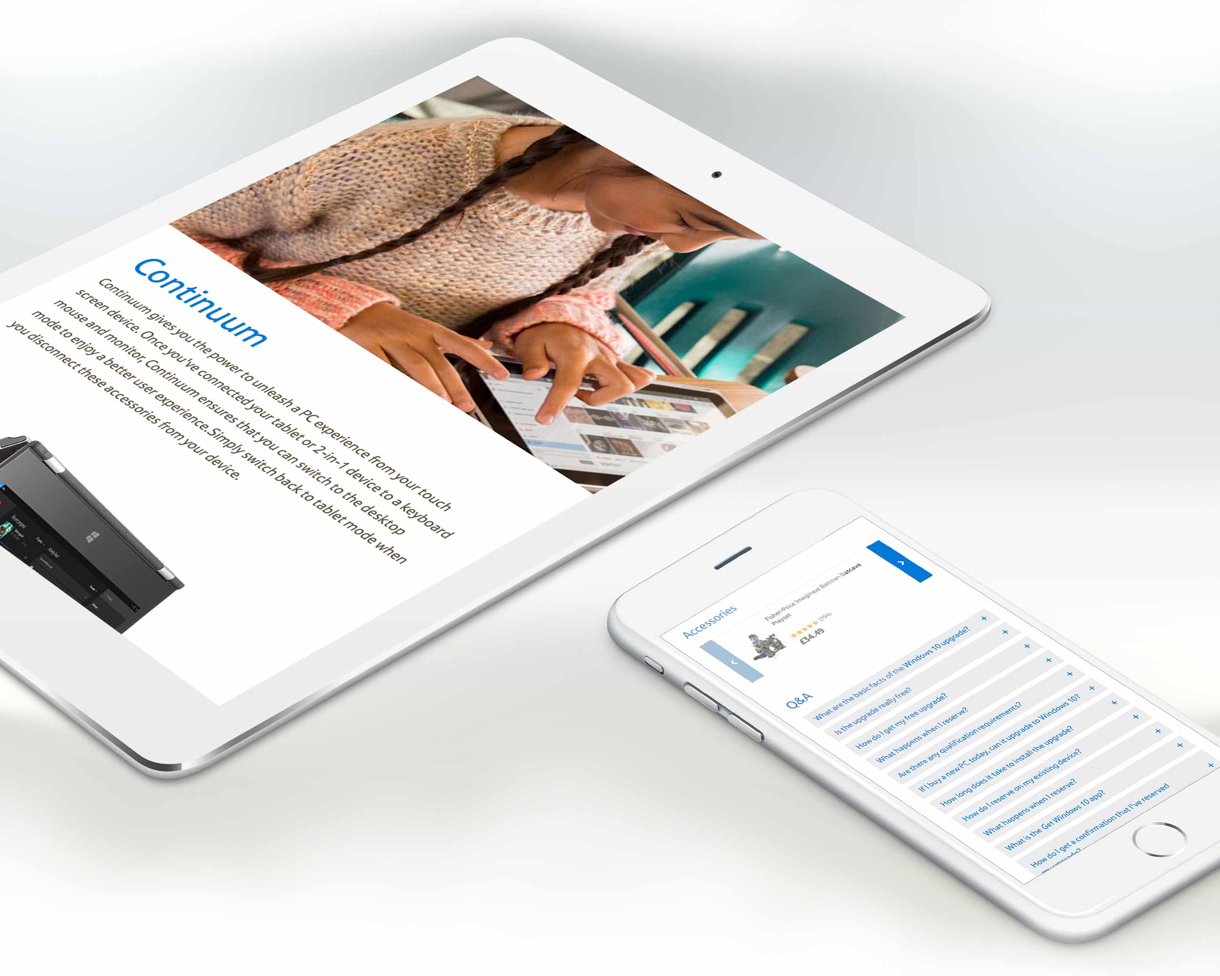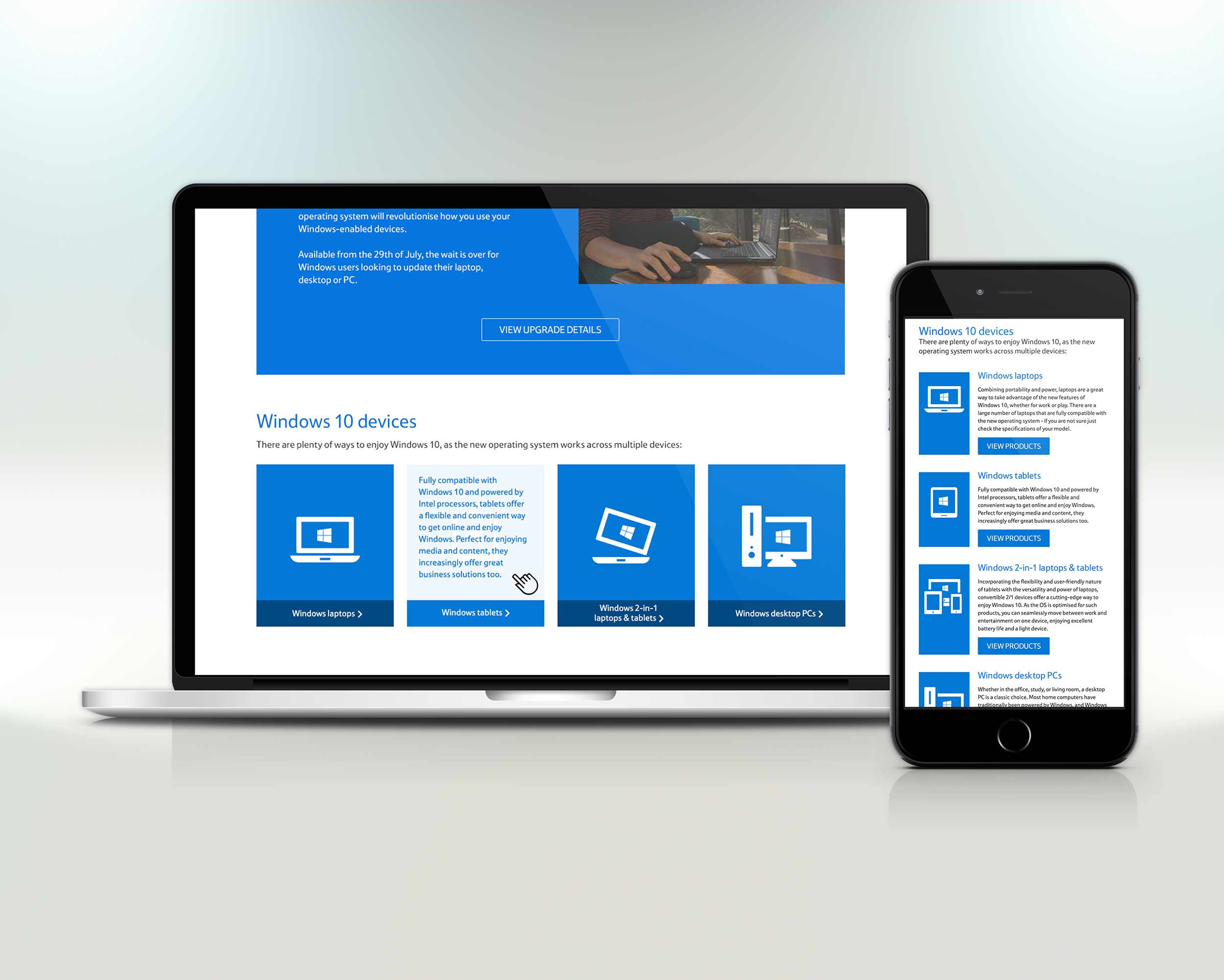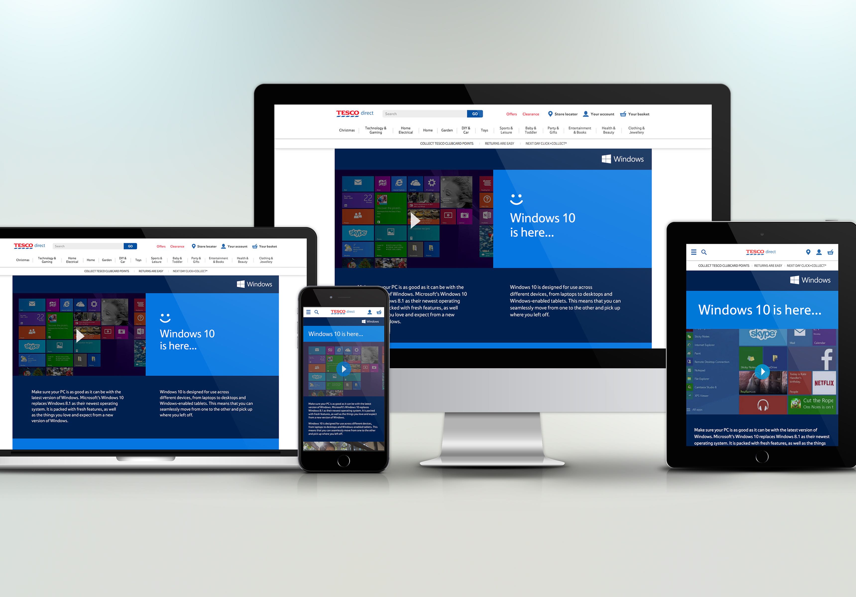 Original W10 launch brand assets provided by Windows, some were edited and device icons created to fit with page layout